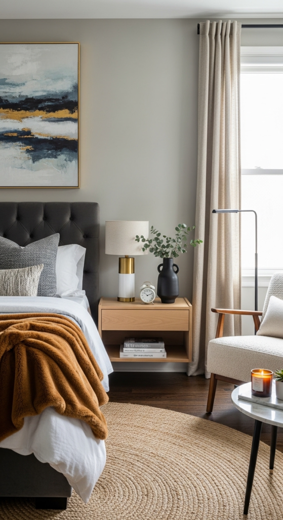 You can always add color through pillows, throws, or artwork. This keeps your room flexible and easy to update over time.