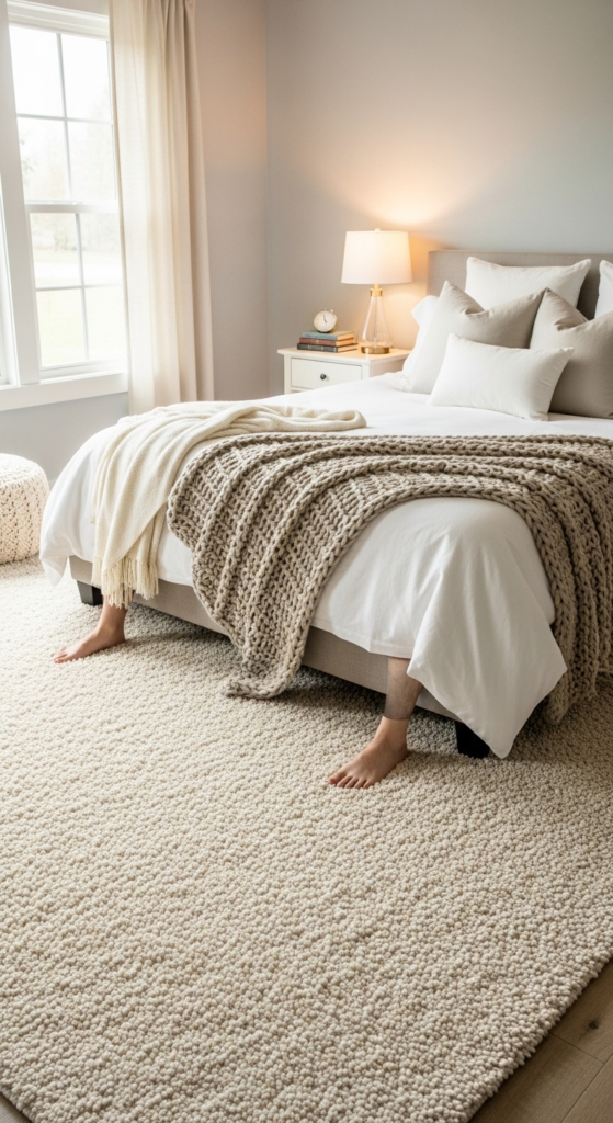 This instantly makes your room feel more cohesive and high-end. Plus, stepping onto a soft rug in the morning feels so much better than a cold floor.
