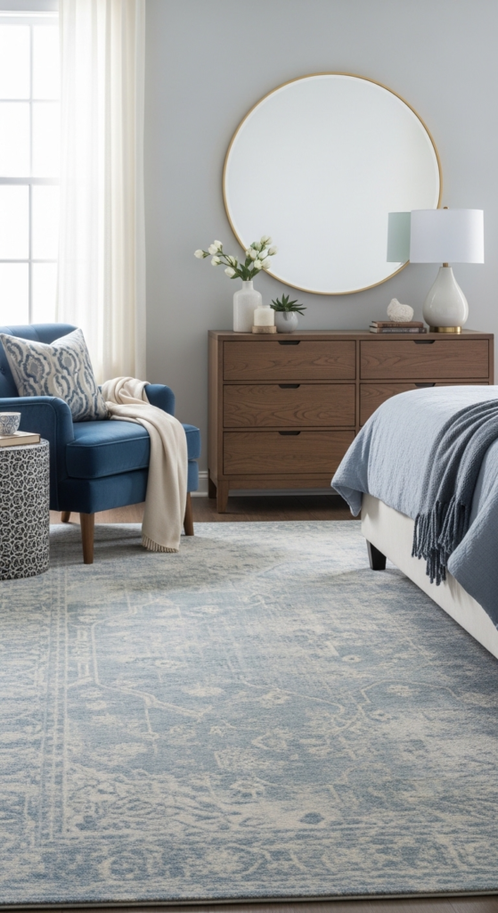 For example, you can have pale blue walls, navy pillows, and a denim-toned throw. This layering adds depth and makes your room feel professionally styled.