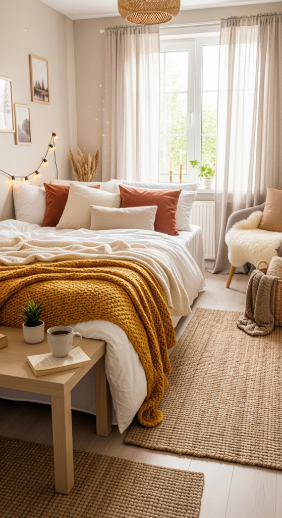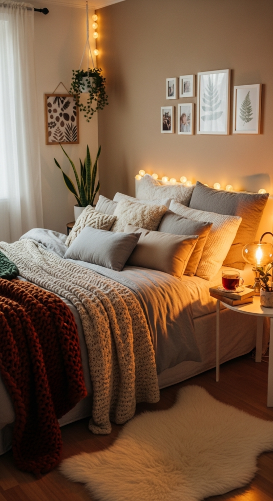 These personal touches make your space feel warm and lived-in instead of styled and cold. Cozy isn’t just about looks — it’s about feeling at home.