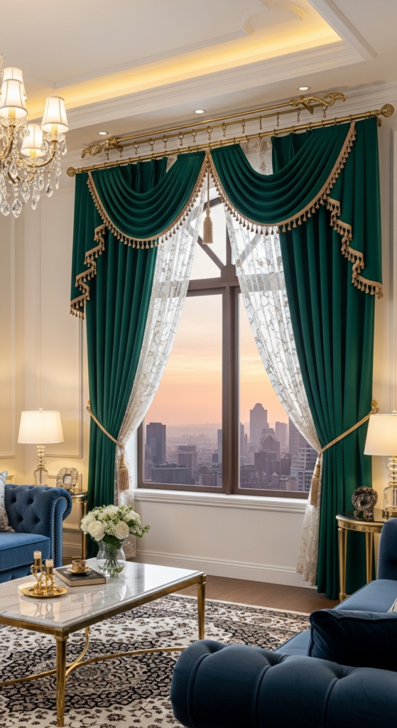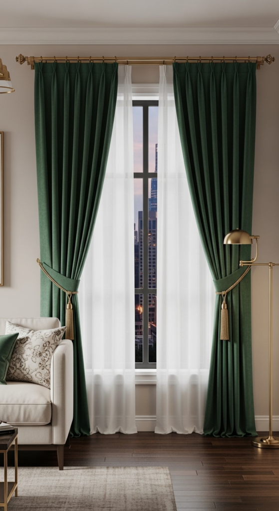 During the day, keep the sheers closed for light. At night, pull the heavier curtains for privacy. It’s practical and looks like something straight out of a magazine.