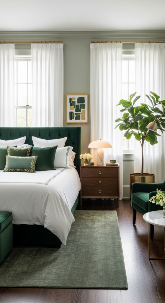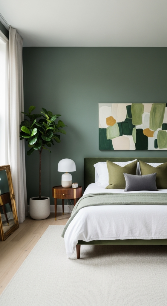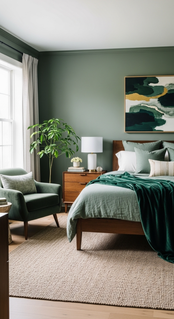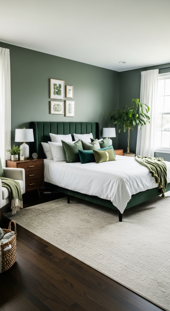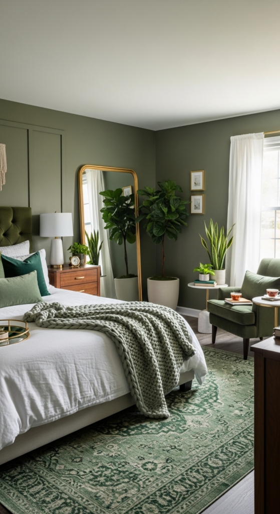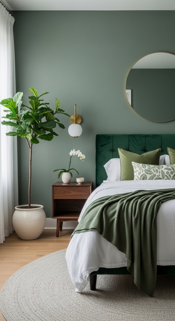 Don’t stick to just one shade. Mixing tones like sage, emerald, and olive adds depth and makes your room feel more styled.