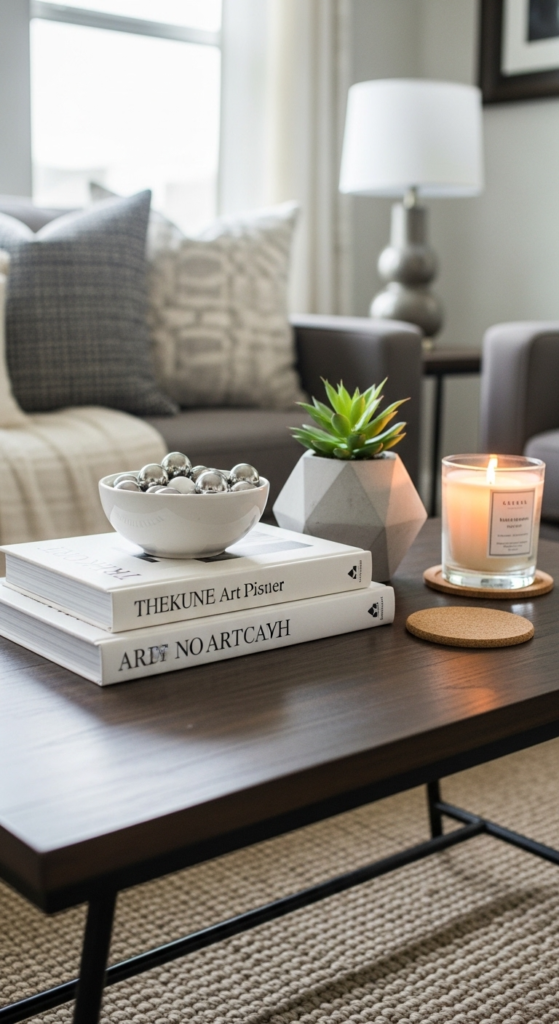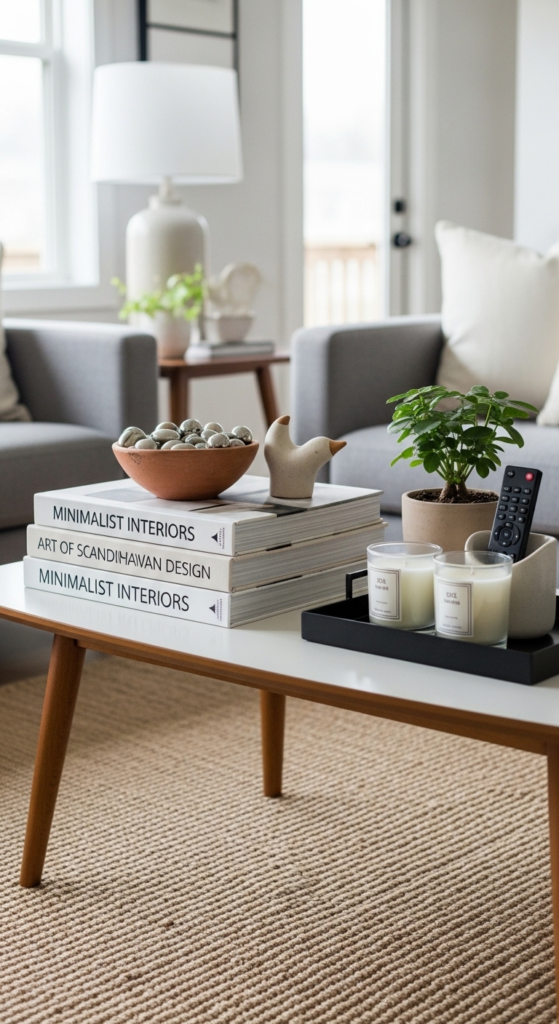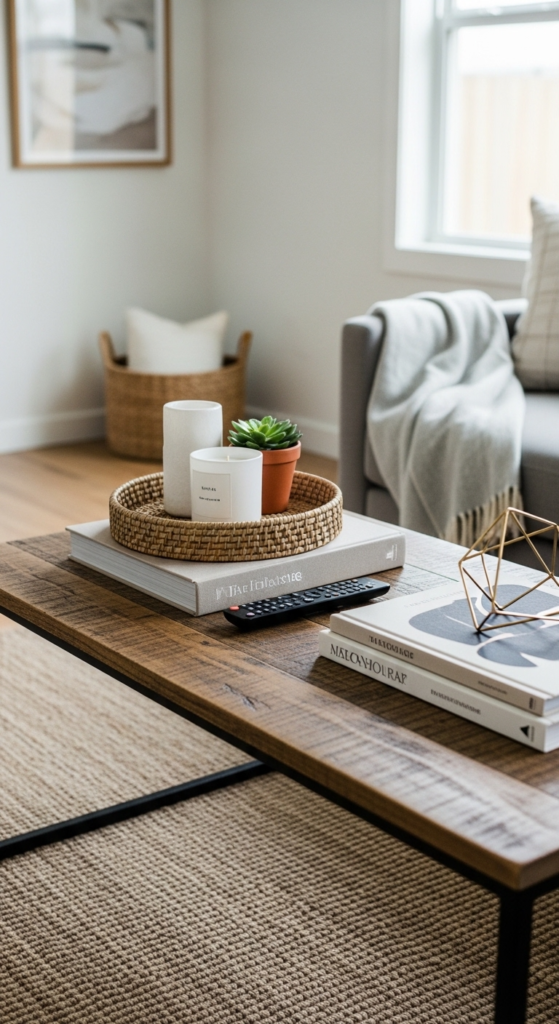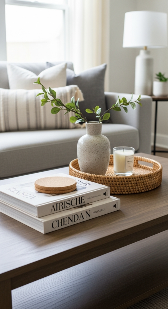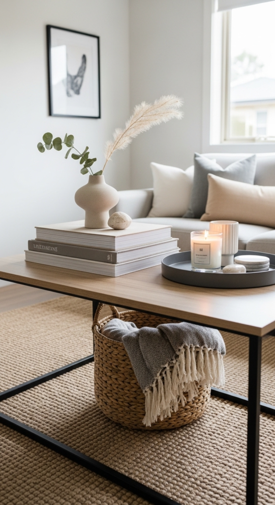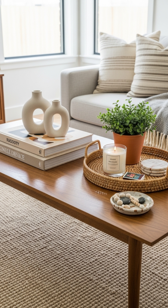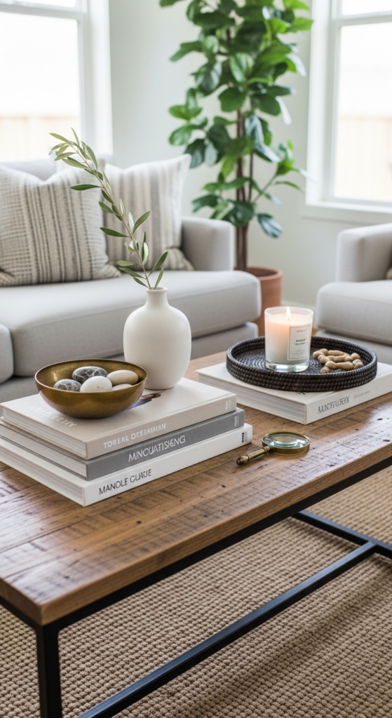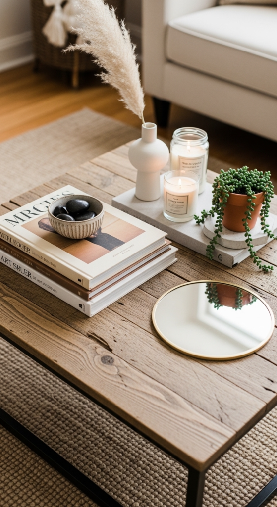 This creates balance without feeling too perfect or stiff. It’s one of the easiest living room coffee table styling tricks you can use.