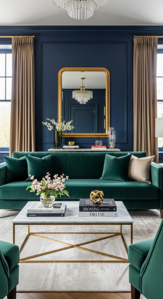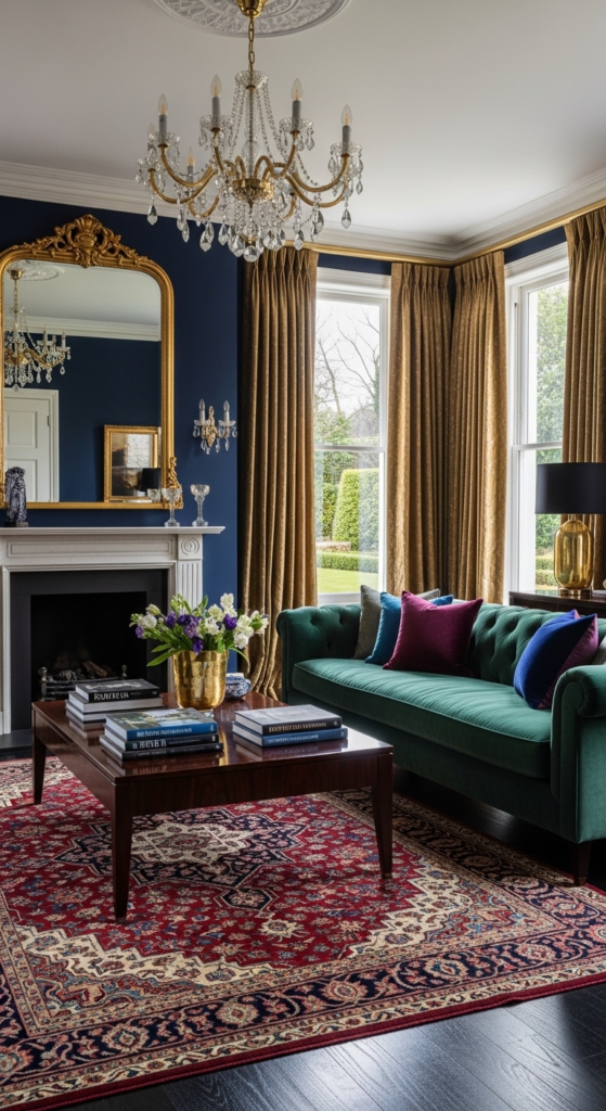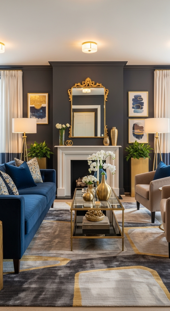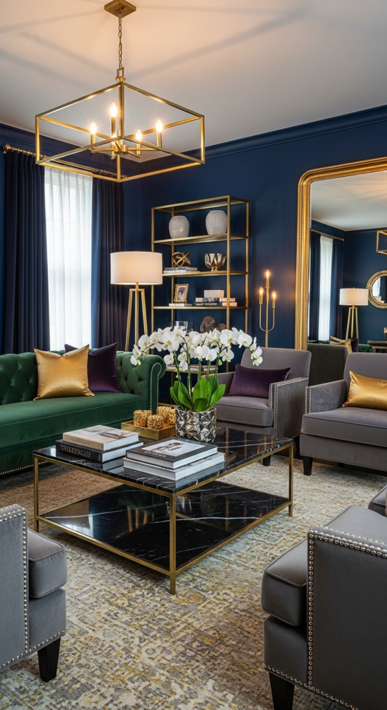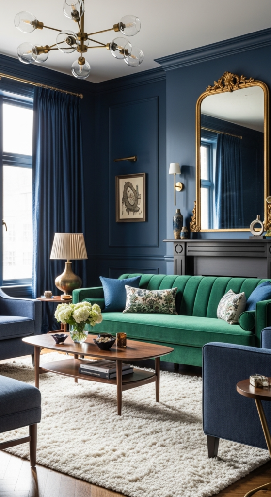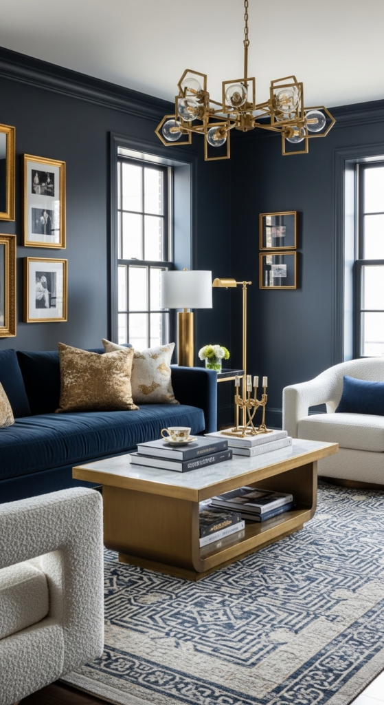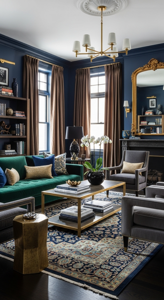 You don’t have to paint the entire room. Even one accent wall or a blue sofa can create that rich, cozy look. Pair it with gold or brass decor for a touch of elegance.