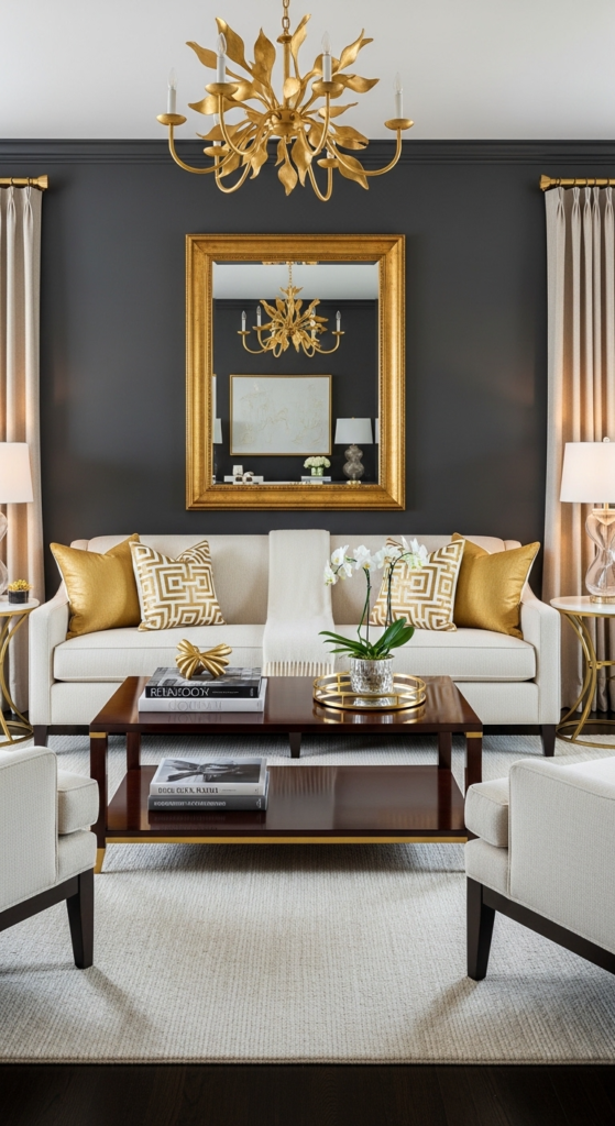 Use gold in small touches like mirrors, trays, or light fixtures. It instantly elevates the whole room.