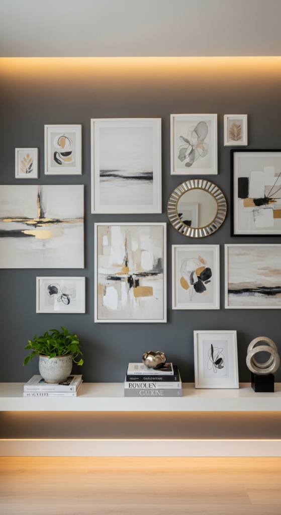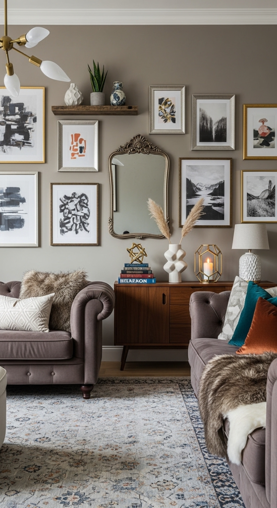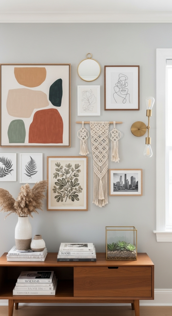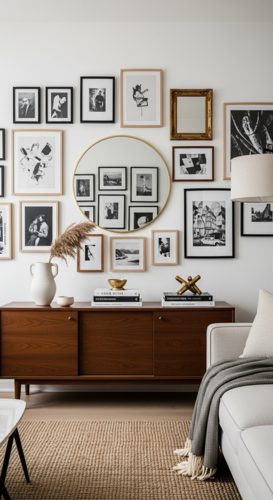 A gallery wall is one of the easiest ways to make your space feel personal and stylish. Mix family photos, art prints, and even quotes you love.