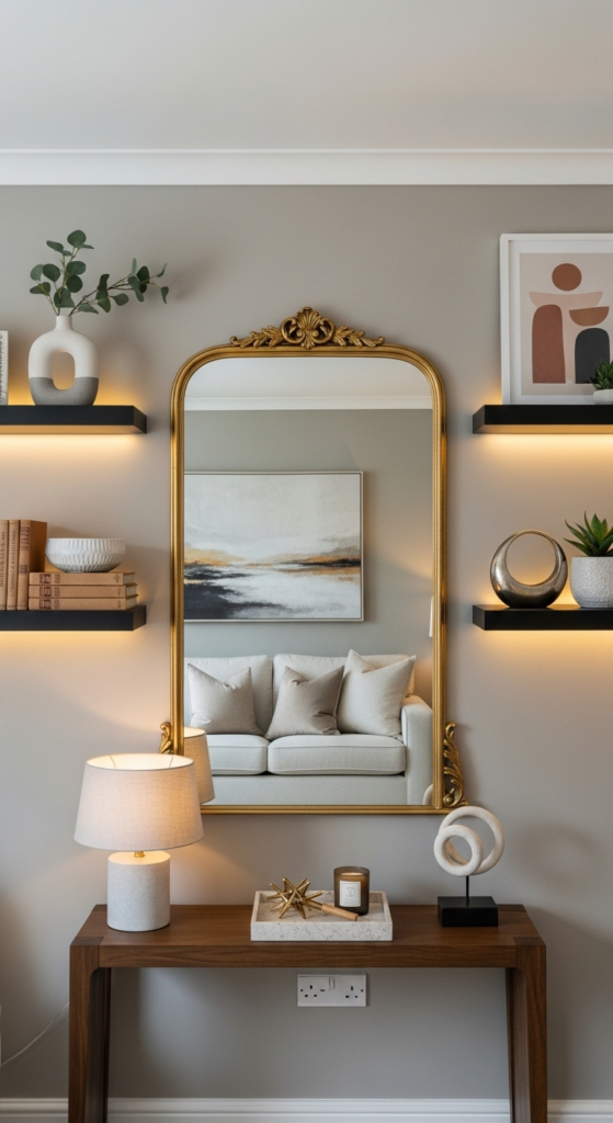 Mirrors are one of the smartest small space decorating tricks. They reflect light and make your living room feel larger and brighter.