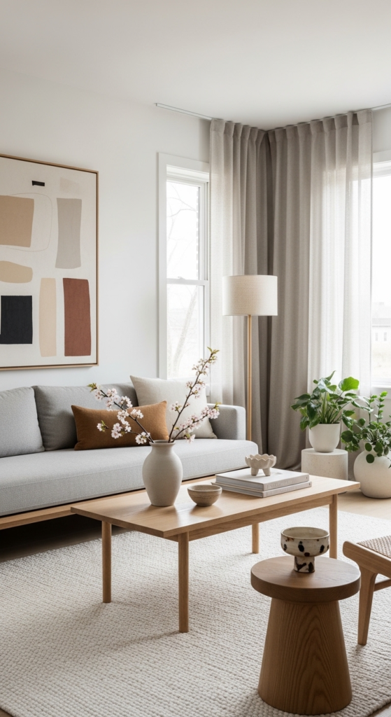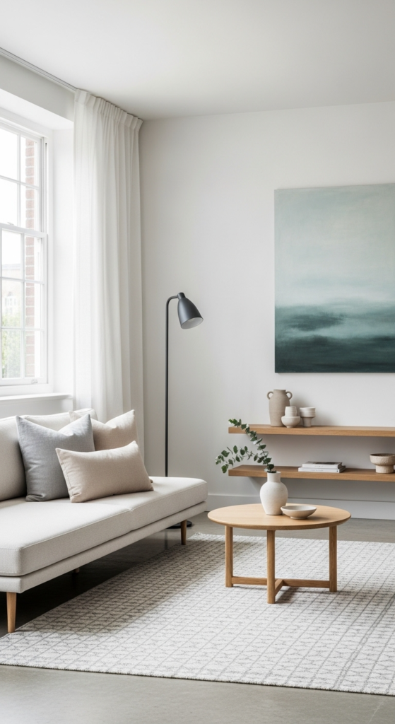 Stick to one or two items per surface. This creates a clean, balanced look that defines minimalist living room decor.