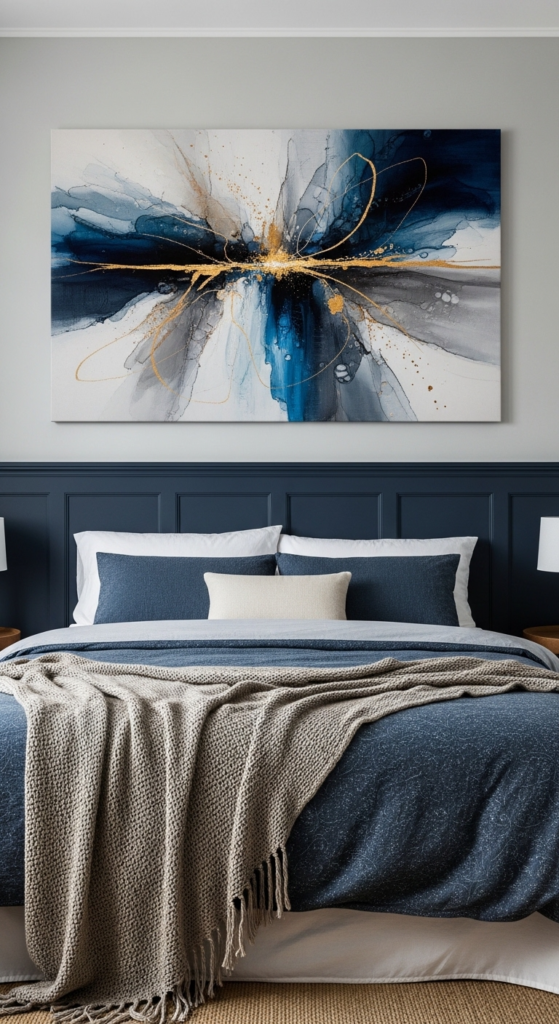One large piece of art or a pair of minimal prints can make a stronger impact. Black-and-white photography or abstract art works especially well in modern spaces.