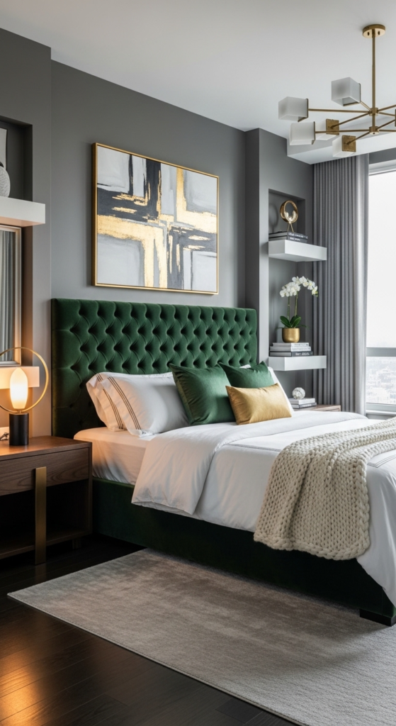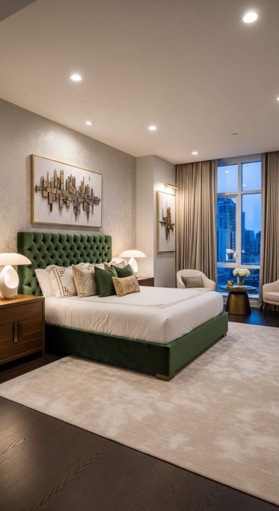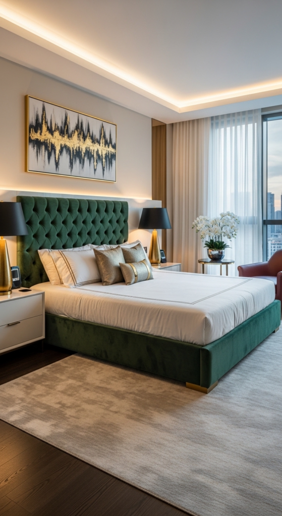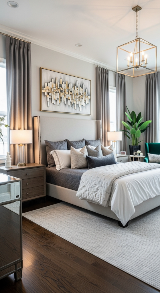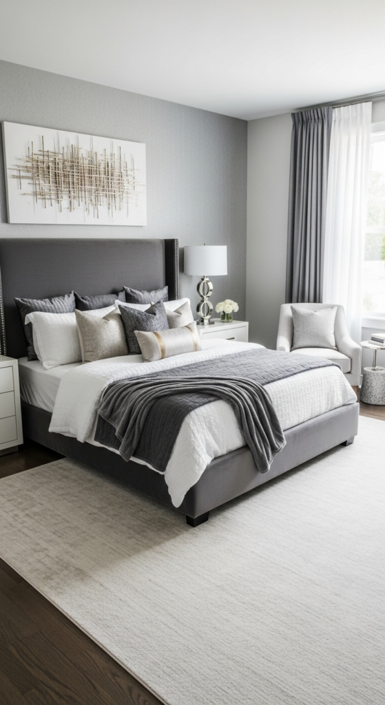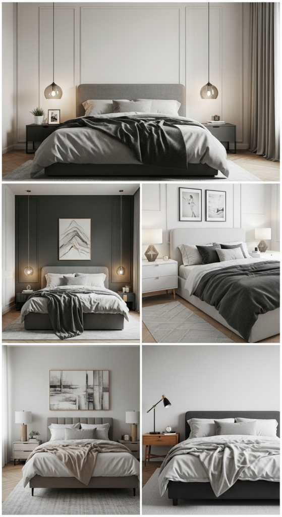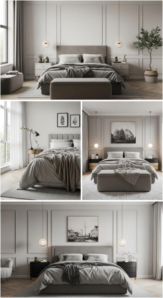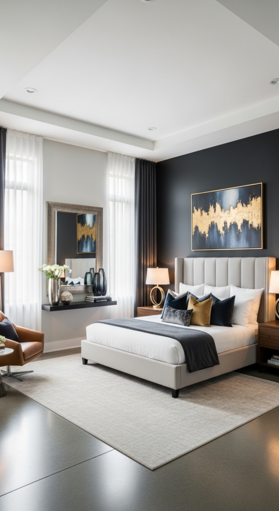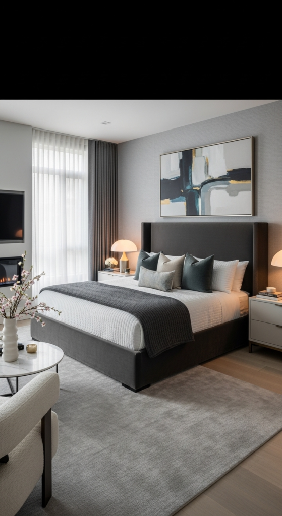 A modern bedroom design almost always starts with a calm, neutral base. Think whites, soft grays, warm beiges, or muted taupes.